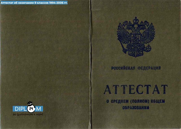 Аттестат школы 9 класс 1994-2006 гг.
