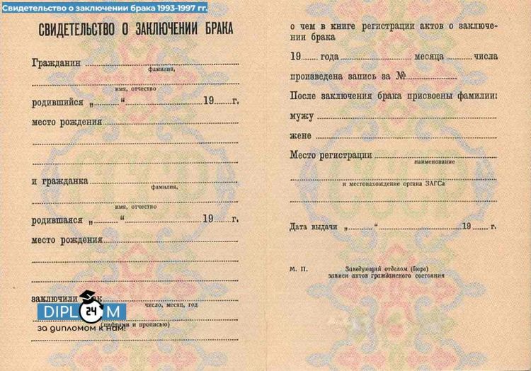 Свидетельство о заключении брака РФ 1993-1997 гг.
